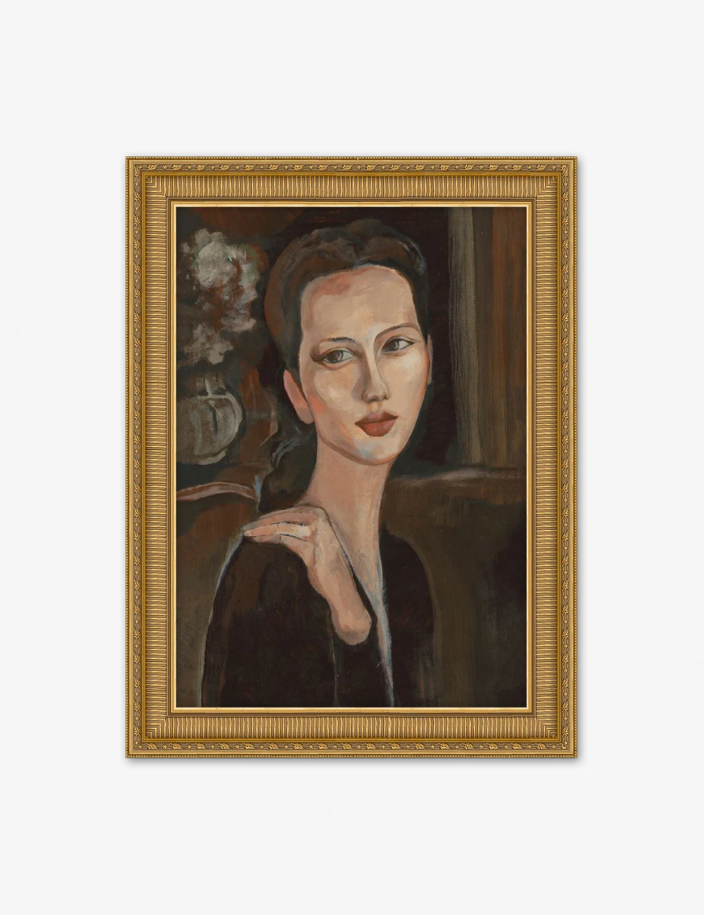 Bring a classic look to your curation with this piece by Jacob Lincoln. The artwork features a portrait of a woman in a timeless yet fresh painterly style. We love the richness and depth of the palette for modern wall decor.